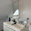 Op de bovenste verdieping vindt u een grote open slaapkamer met aansluitend een badkamer die is voorzien van een ligbad, douche, dubbele wastafel en toilet. Deze ruimte kan desgewenst worden opgedeeld in twee aparte slaapkamers.