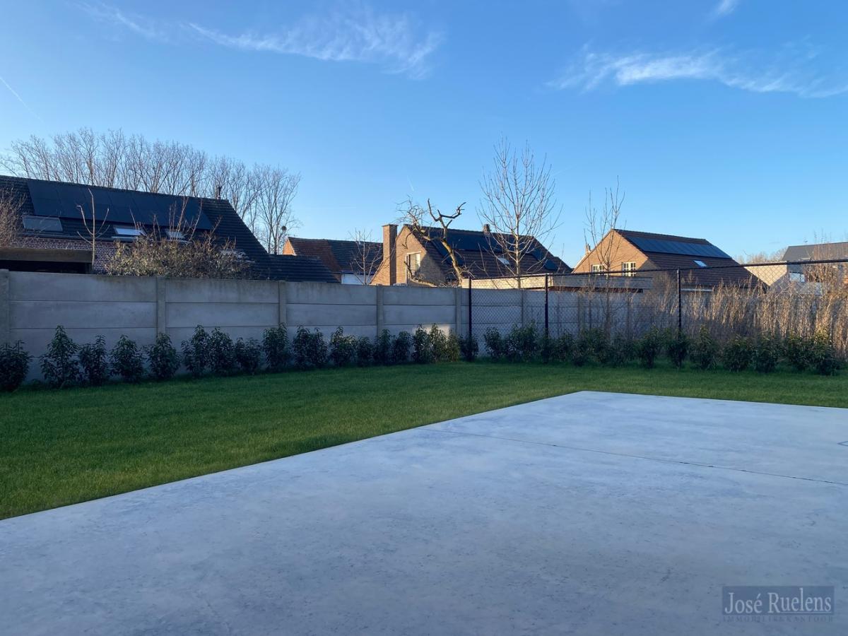 Deze woning werd gebouwd op een perceel van 3a19ca en heeft een gezellig, volledig afgesloten, met draad en poortje, aangelegde tuin met terras.