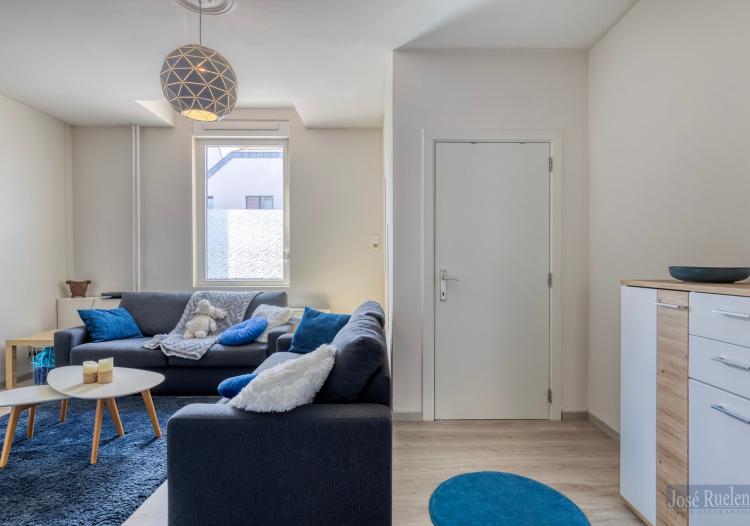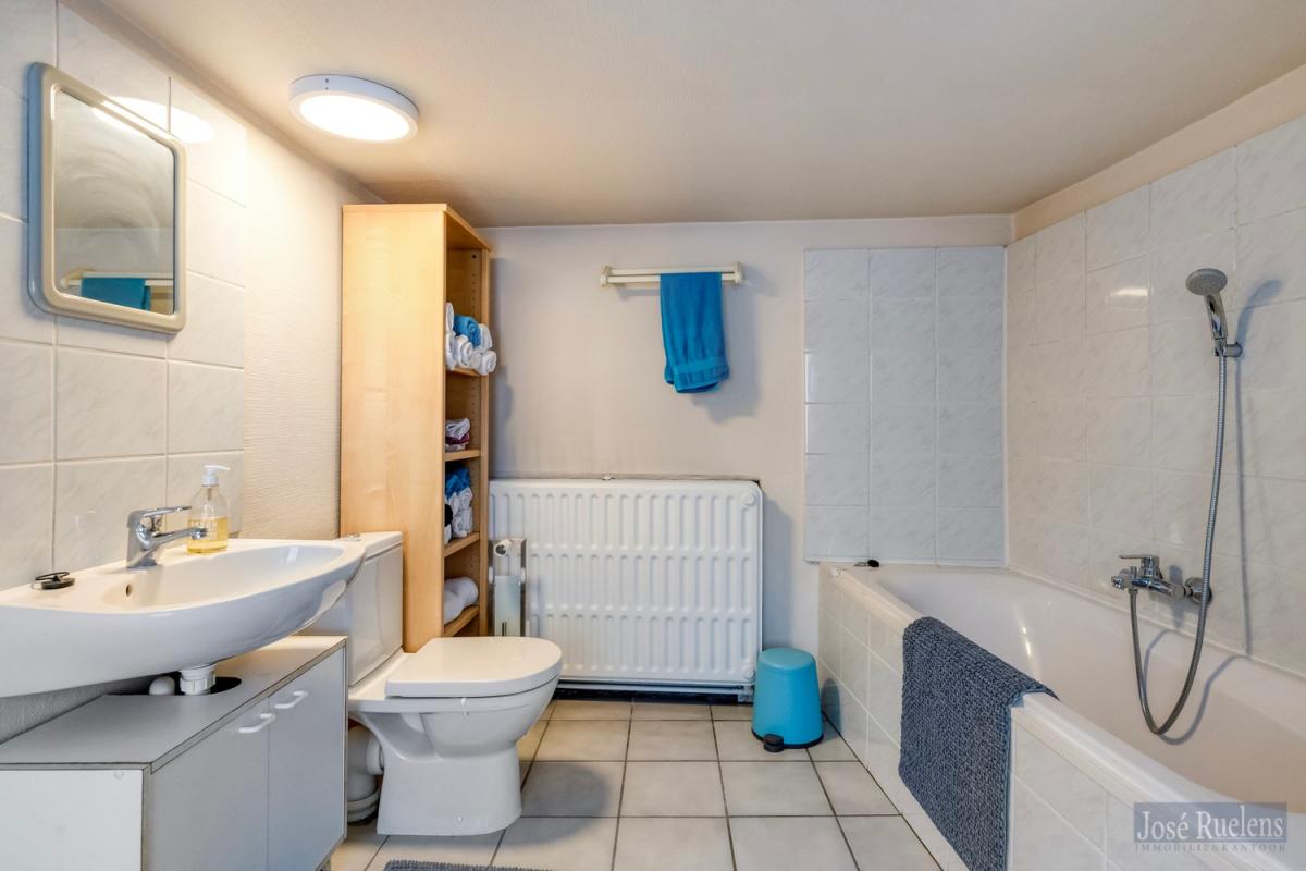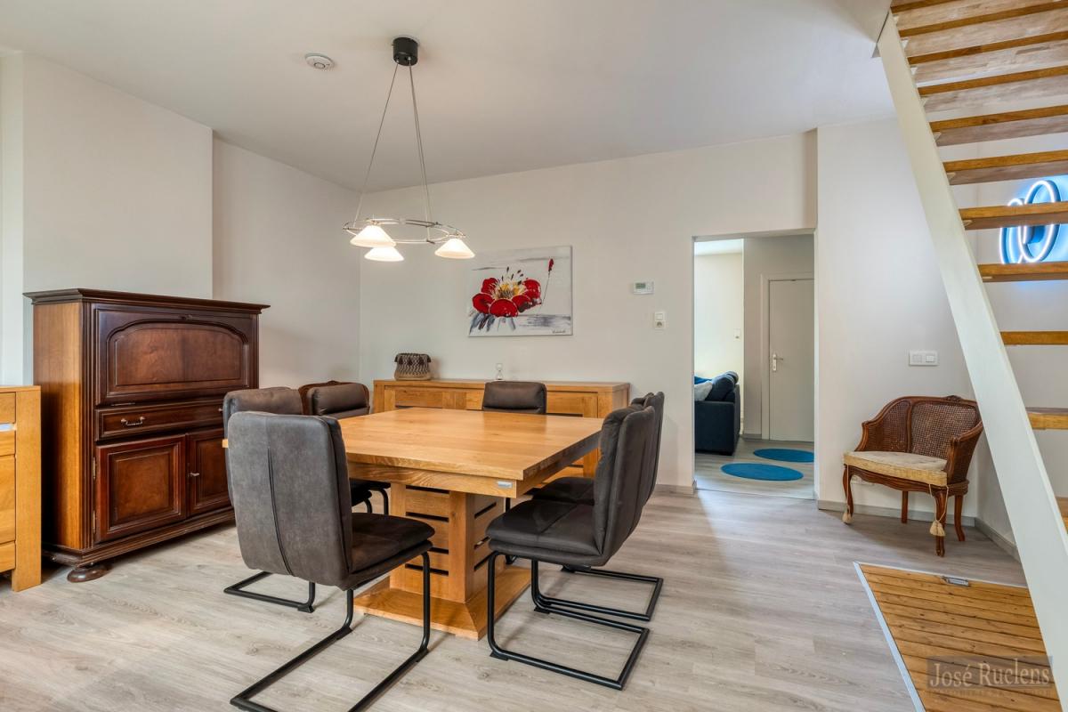 Op het gelijkvloers vindt u een gezellige inkomhal, een lichtrijke woonkamer met aansluitende eetkamer, en een aparte, volledig geïnstalleerde keuken met plaats voor een ontbijttafel. De badkamer is voorzien van een douche in bad, wastafel en toilet. Extra bergruimte is er in overvloed dankzij meerdere stockageplaatsen.