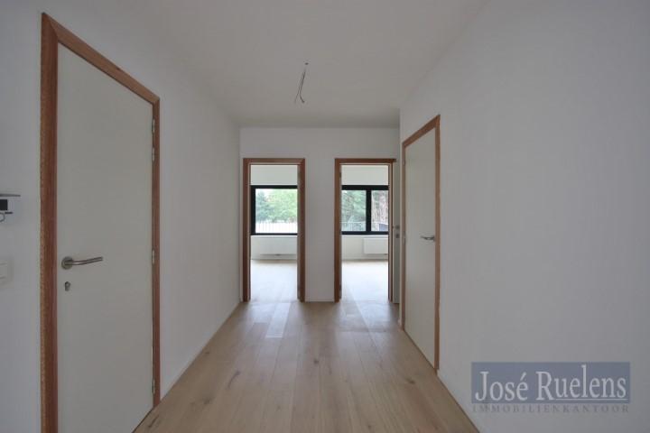 Het appartement omvat een ruime inkomhal, leefruimte met open keuken en berging, 2 slaapkamers, toilet, badkamer met inloopdouche en kelderberging.