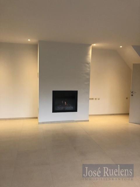 Het appartement omvat op het gelijkvloers een ruime inkomhal, garage en tuin met terras. Op de eerste verdieping bevinden zich de zonnige living met open haard en volledig ingerichte