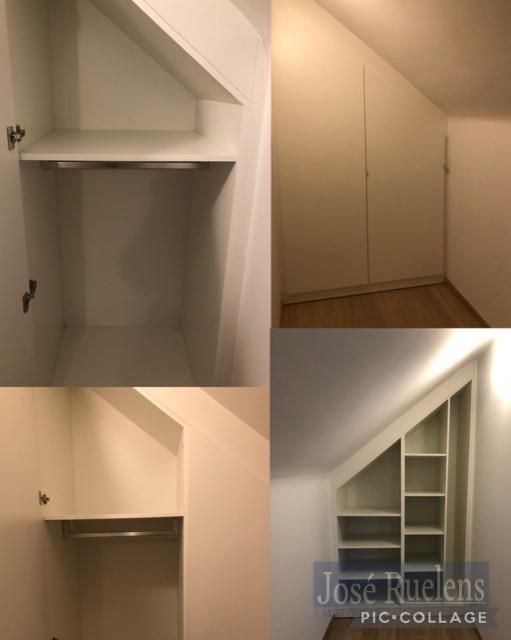 1 grote en 1 kleine slaapkamer, de dressing met ingemaakte kasten , de badkamer met douche , en het toilet bevinden zich op de bovenste verdieping.