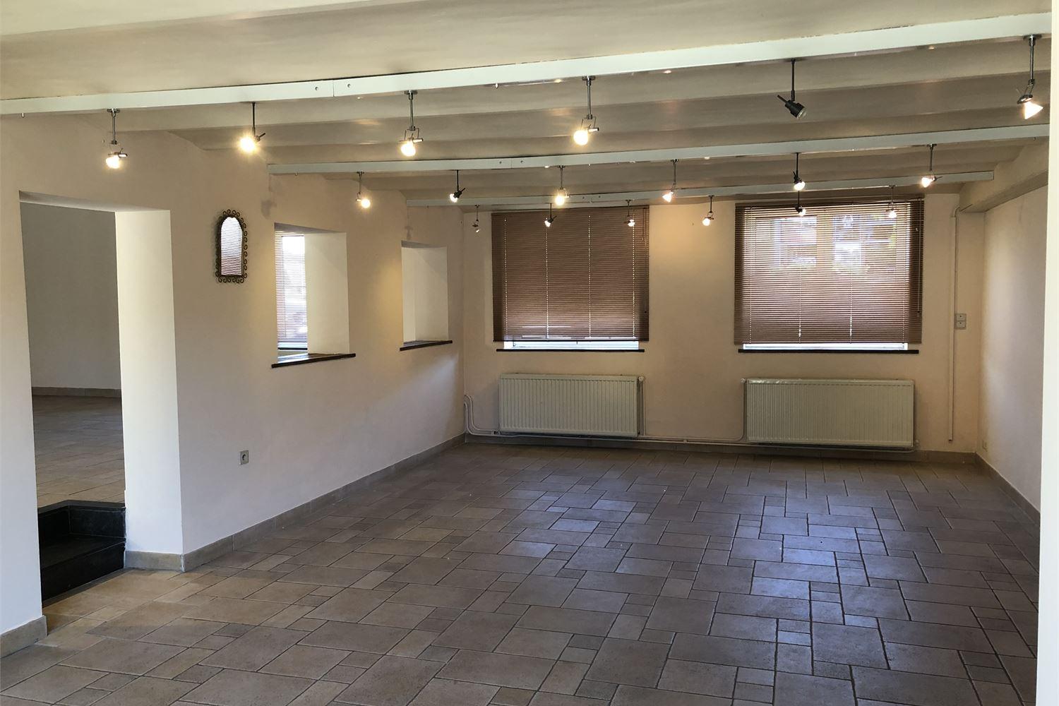 Het gelijkvloers heeft 2 grote ruimtes en een keuken met mogelijkheden voor groepspraktijk dokters, kinesisten of kantoorruimte.