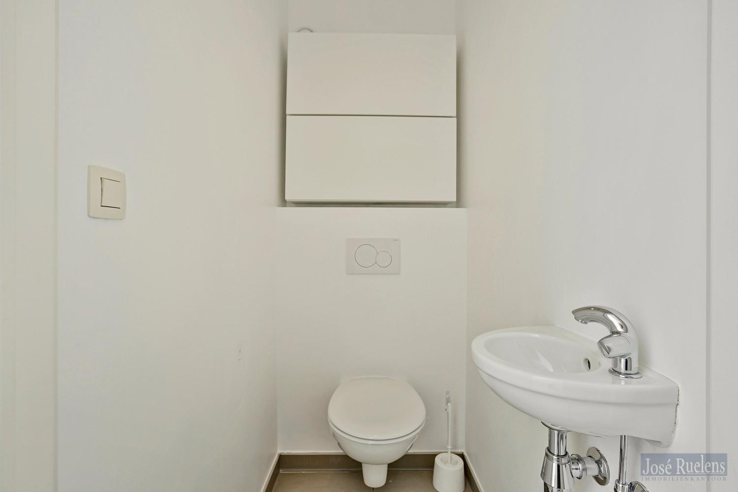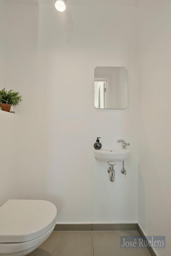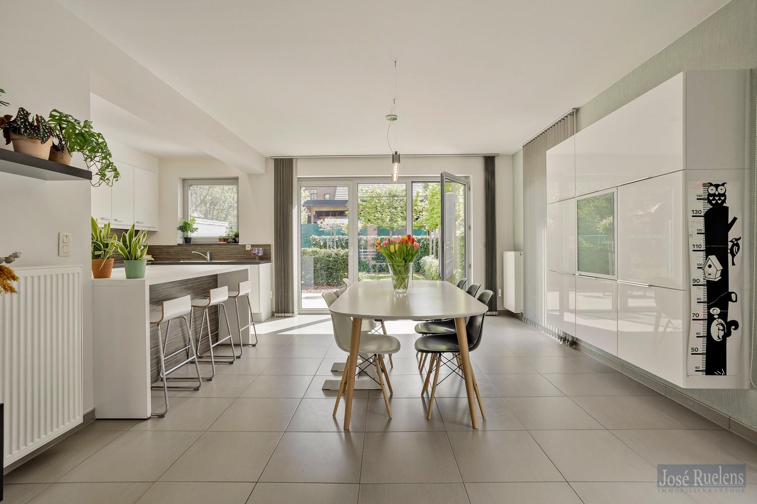 U kan de woning betreden via een ondergrondse garage (mogelijkheid voor 2 wagens), langs de garage is er een wasplaats en de traphal voor naar de gelijkvloerse verdieping. Hier vindt men een inkomhal met toilet, leefruimte met open keuken. Via de 2de trap betreed je het verdiep en hier zijn drie kamers en de badkamer. Achter de woning is er gezellig tuintje, mooi afgescheiden van buren. Een grote koepel op het dak zorgt voor veel lichtinval in de woning.