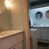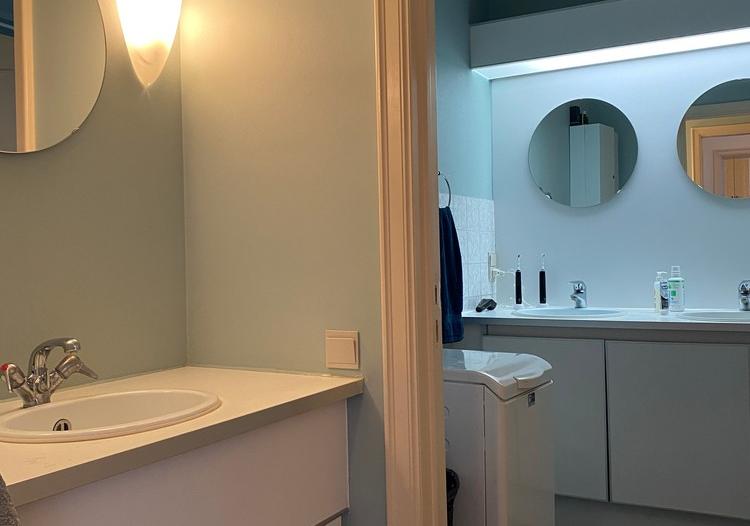 Achteraan zijn de 3 slaapkamers gelegen, waarvan 1 met aangenaam terras, en de badkamer voorzien van een wastafel en douche in bad. Het toilet is apart en voorzien van een wastafeltje.