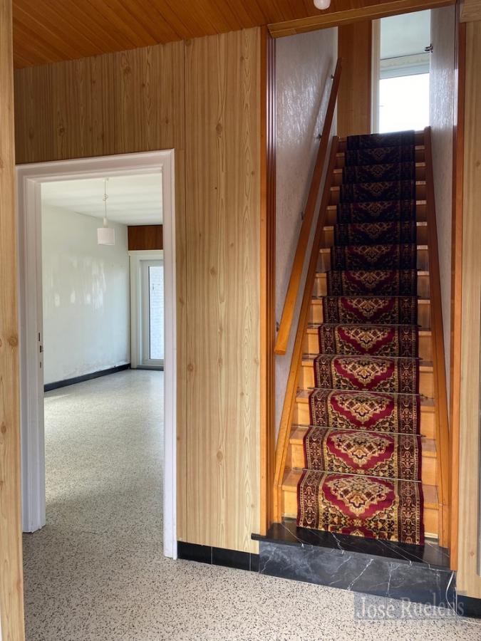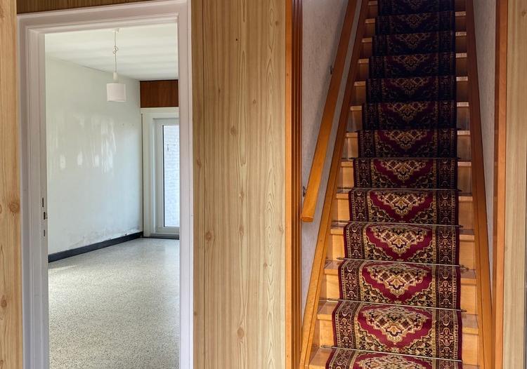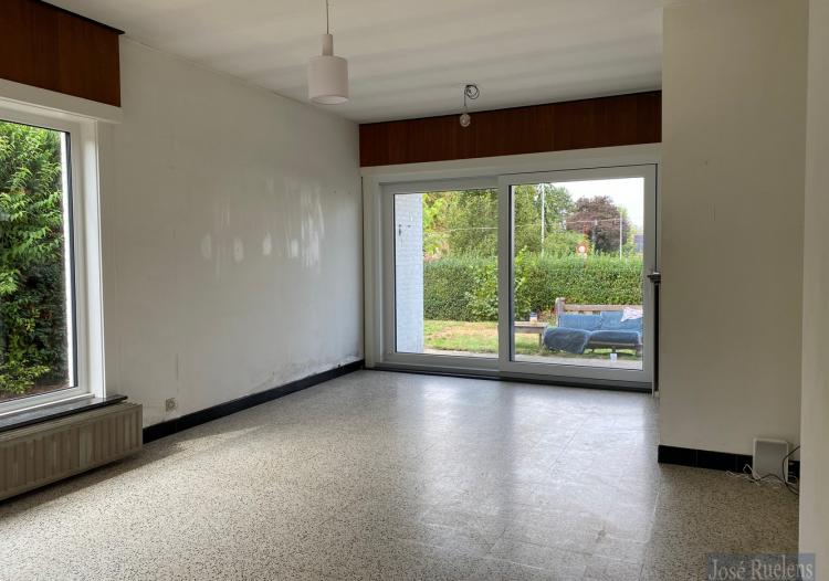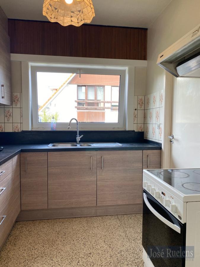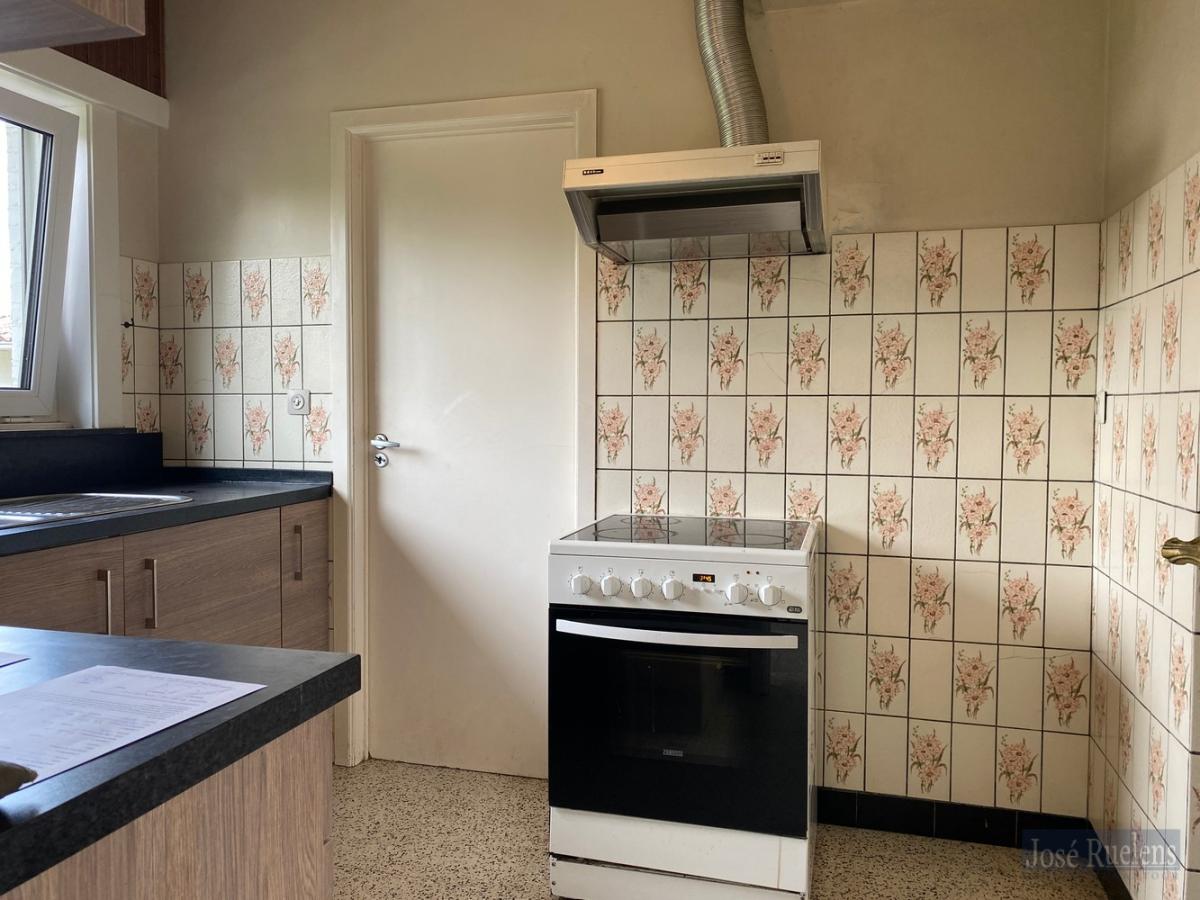 De woning omvat op het gelijkvloers een inkomhal met gastentoilet, een lichtrijke leefruimte met knusse zithoek vooraan, een aparte keuken met aansluitend een kleine berging.