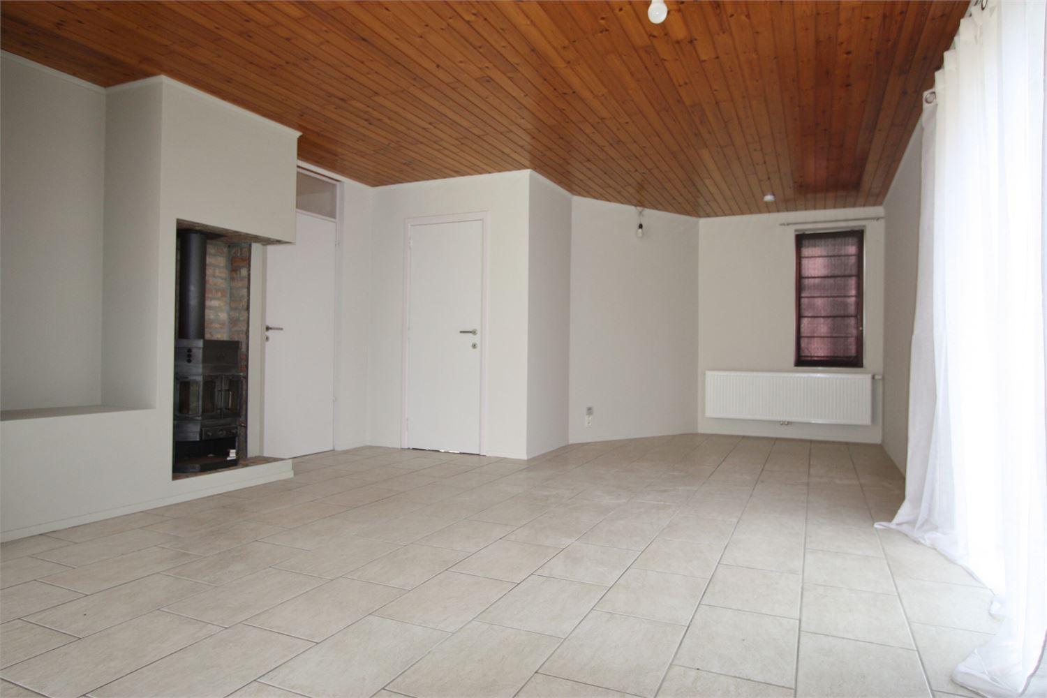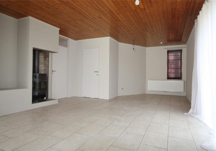 De woning bestaat gelijkvloers uit een inkom met een gestentoilet en plaats voor een vestiaire, een ruime woonkamer met vooraan knusse TV-hoek aan de schouw, een open, geïnstalleerde keuken met aansluitend een berging met aansluitingen voor wasmachine. Verder is er nog een inpandige garage, ook handig voor de fietsen.