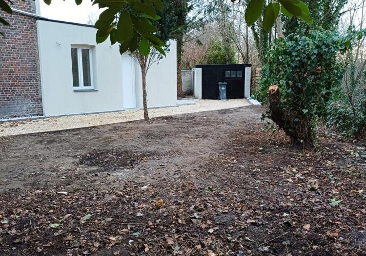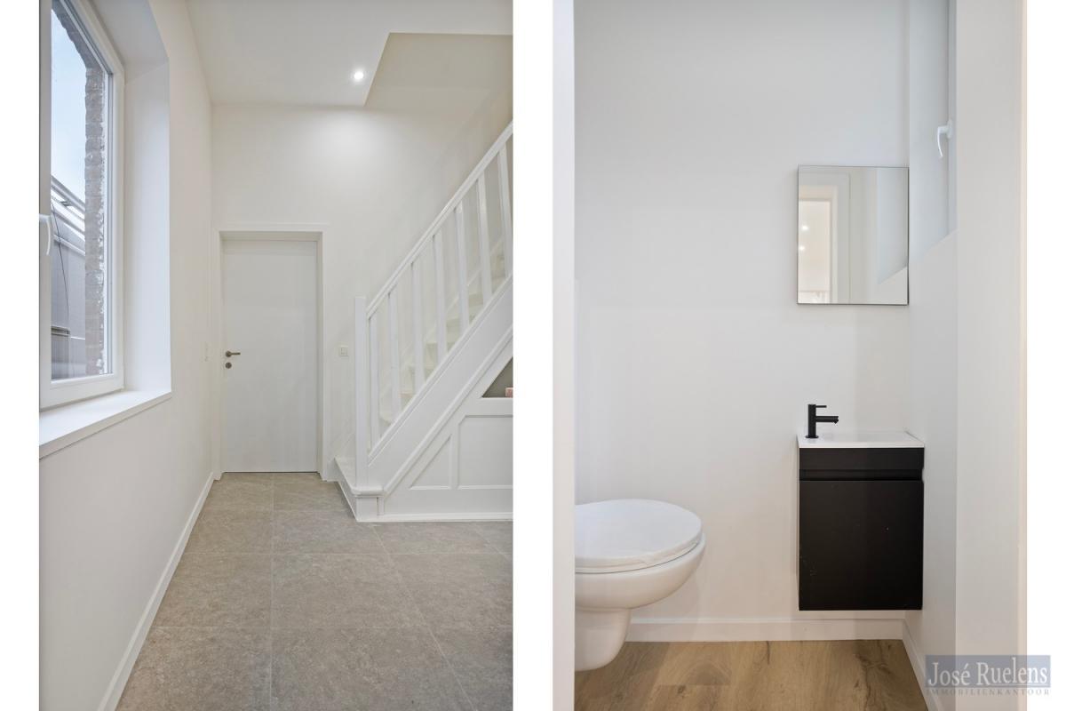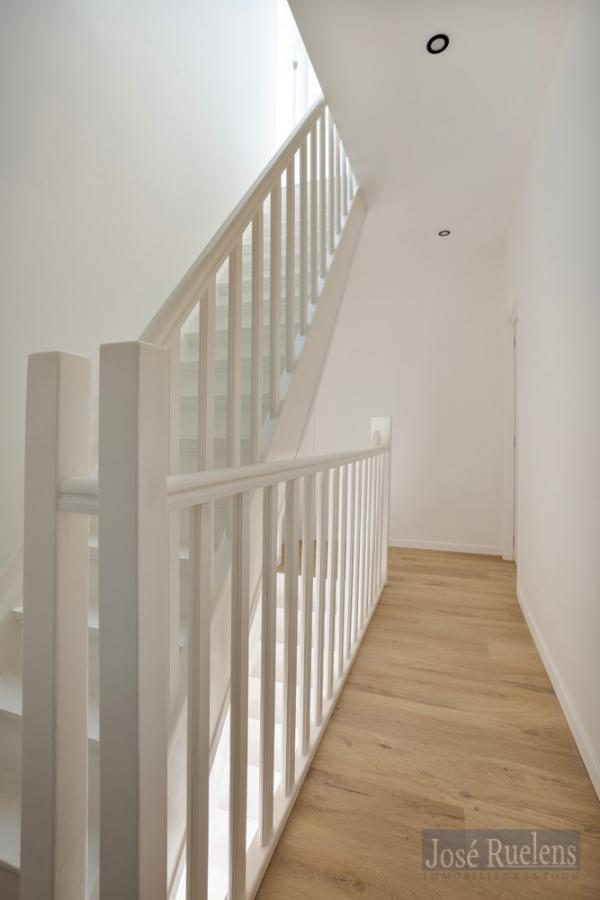 Totaal gerenoveerde lage energiewoning , type HOB met 4 slaapkamers, bureel, tuin en garage met oprit voor 2 wagens na elkaar.