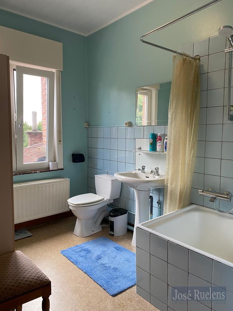 Op de eerste verdieping zijn er 2 grote slaapkamers, een kleine kamer, eventueel voor dressing en de badkamer voorzien van een lavabo, douche en toilet.
