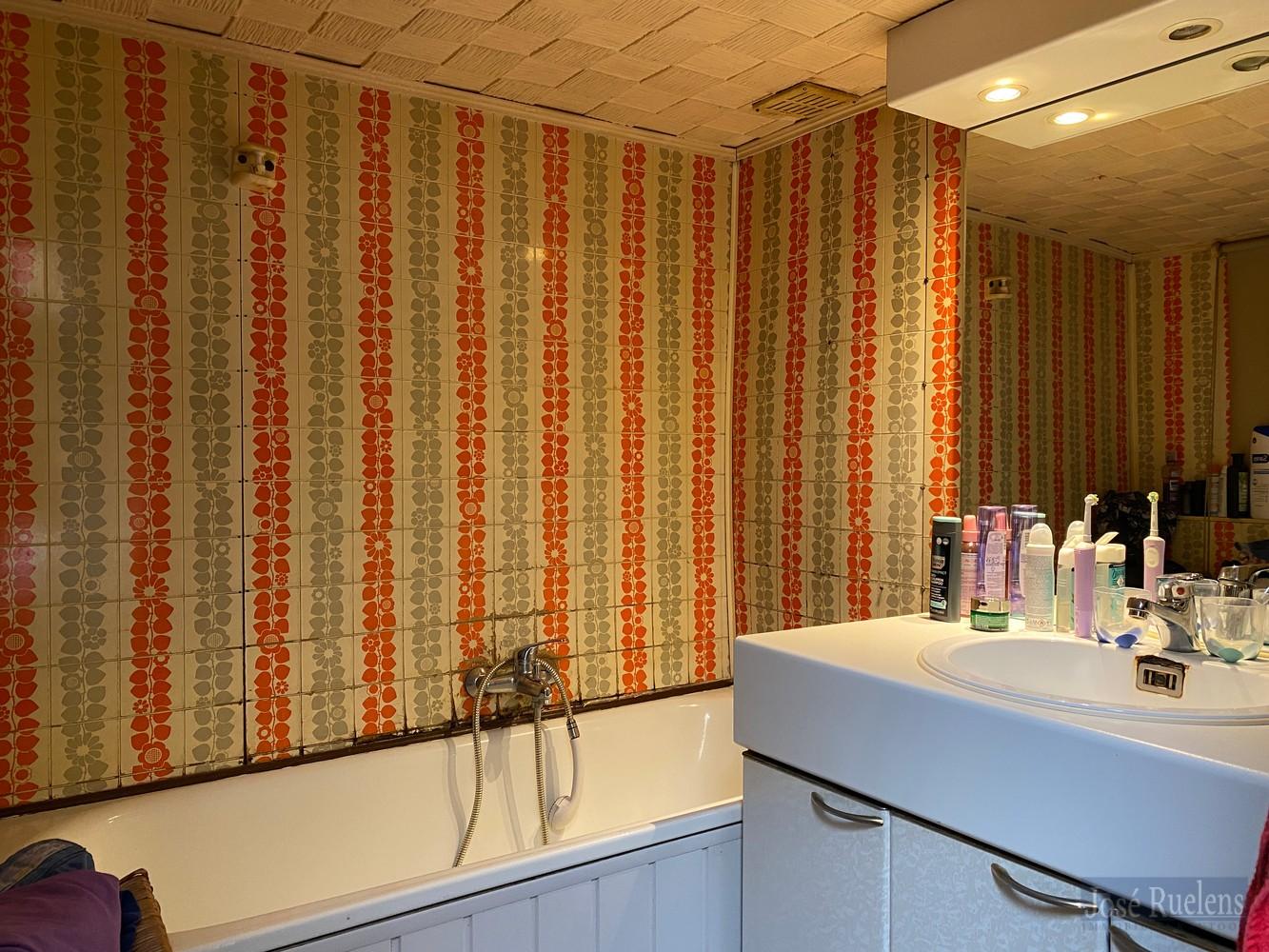 Deze woning bestaat gelijkvloers uit een inkomhal waar plaats is voor een fiets, een voorplaats, een tussenplaats en achteraan een keuken met aansluitend een wasruimte en de badkamer met ligbad en enkele wastafel.