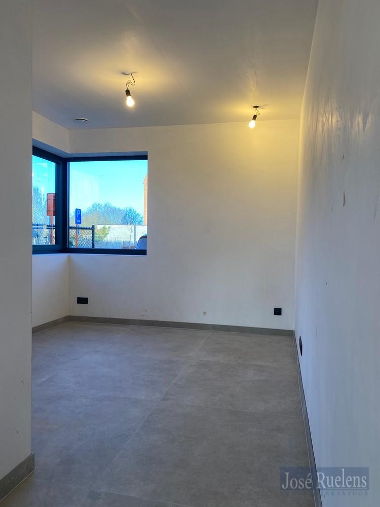 De woning bestaat gelijkvloers uit een inkom met plaats voor een vestiaire en een gastentoilet. Via een mooie zwarte glazen deur kom je in de volledig ingerichte leefkeuken. De keuken is voorzien van alle, kwalitatieve toestellen en een groot eiland met veel werkoppervlakte of plaats voor een ontbijthoek. De knusse woonkamer ligt vooraan en heeft veel mogelijkheden. Verder is er gelijkvloers nog een inpandige garage voor 1 wagen fietsen en voorzien van een uitgietbak en aansluiting voor een wasmachine.