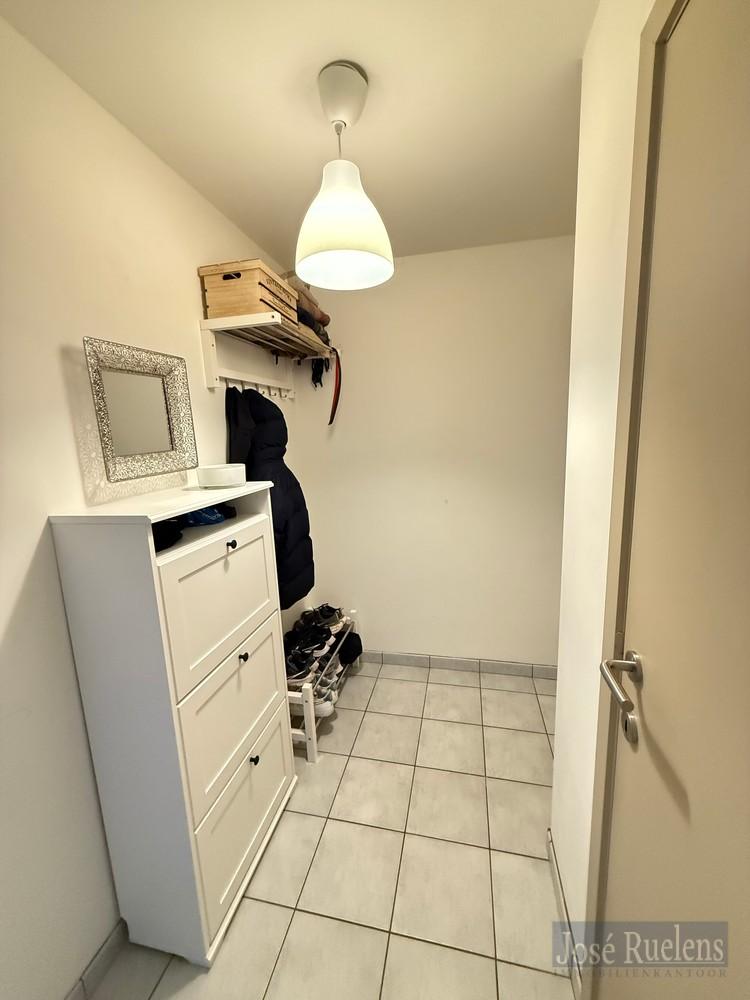 Het appartement bestaat uit een inkom met gastentoilet, een heel lichtrijke woonkamer met open, geïnstalleerde keuken en aansluitend een handige berging.