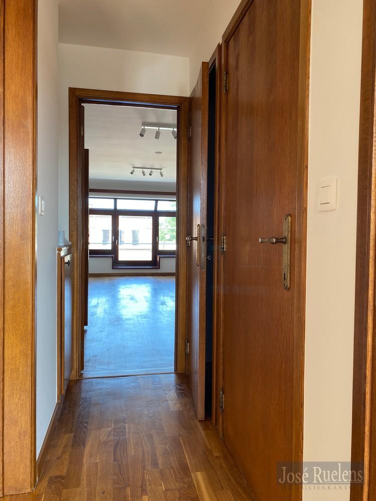 Dit appartement werd volledig opgefrist en bestaat uit een mooie woonkamer met aansluitend een aparte keuken. Via de nachthal, achteraan, is er toegang tot de grote slaapkamers, een tweede kamer die ook gebruikt kan worden als bureau en waar de aansluiting voor een wasmachine voorzien werd en de badkamer met inloopdouche. Het toilet is apart in de nachthal.