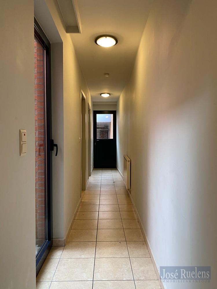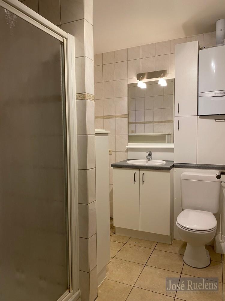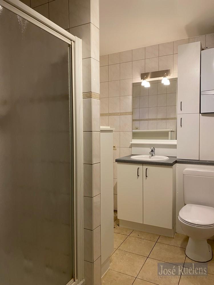 Het appartement bestaat uit een volledig geïnstalleerde keuken, een aangename woonkamer met vaste kastenwand, een badkamer met aansluiting voor een wasmachine, een toilet, douche en enkele wastafel en de slaapkamer. Achteraan is er nog een gemeenschappelijke garage maar kan ook gebruikt worden als terras.