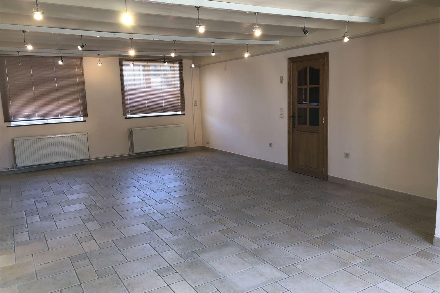 Het gelijkvloers heeft 2 grote ruimtes en een keuken met mogelijkheden voor groepspraktijk dokters, kinesisten of kantoorruimte.