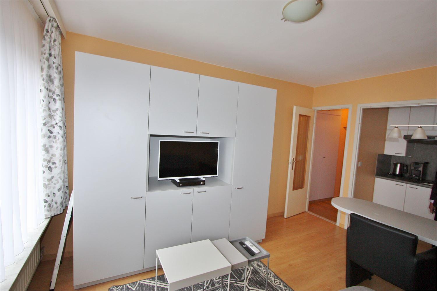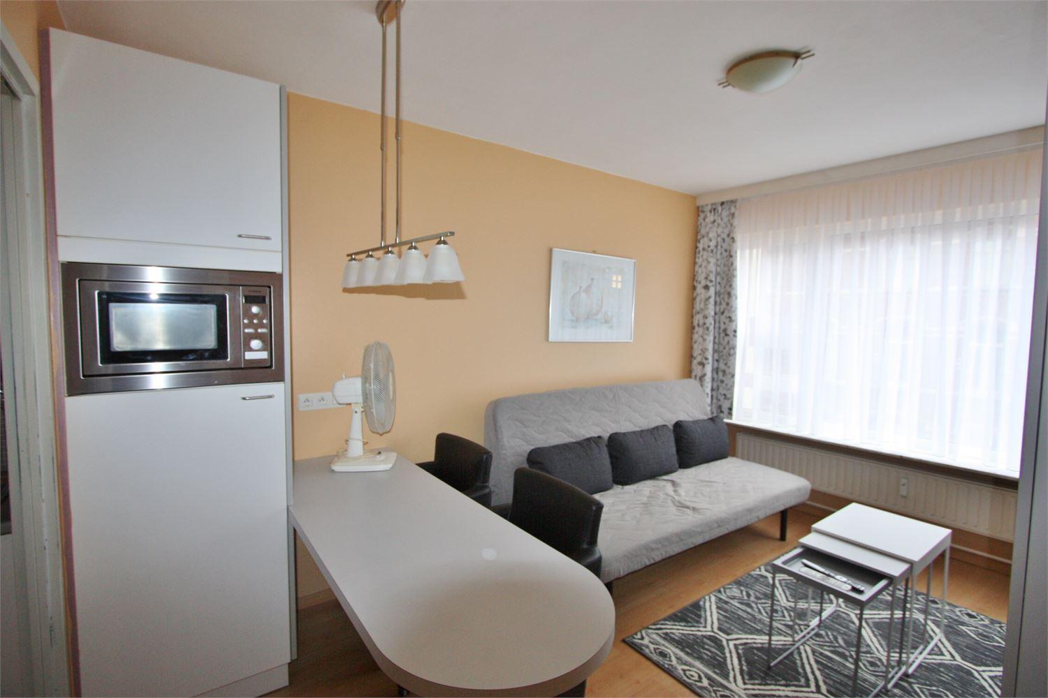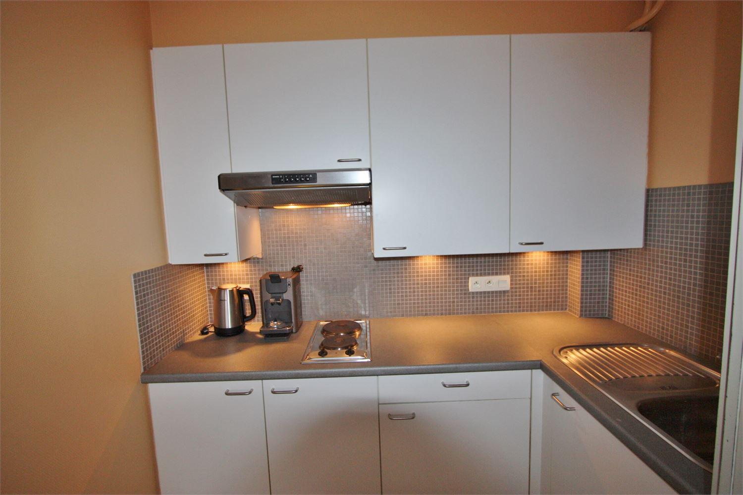 De studio word volledig bemeubeld verkocht, badkamer werd 4 jaar geleden vernieuwd en is er een kitchenette met koelkast, microgolf en 2 kookplaten.