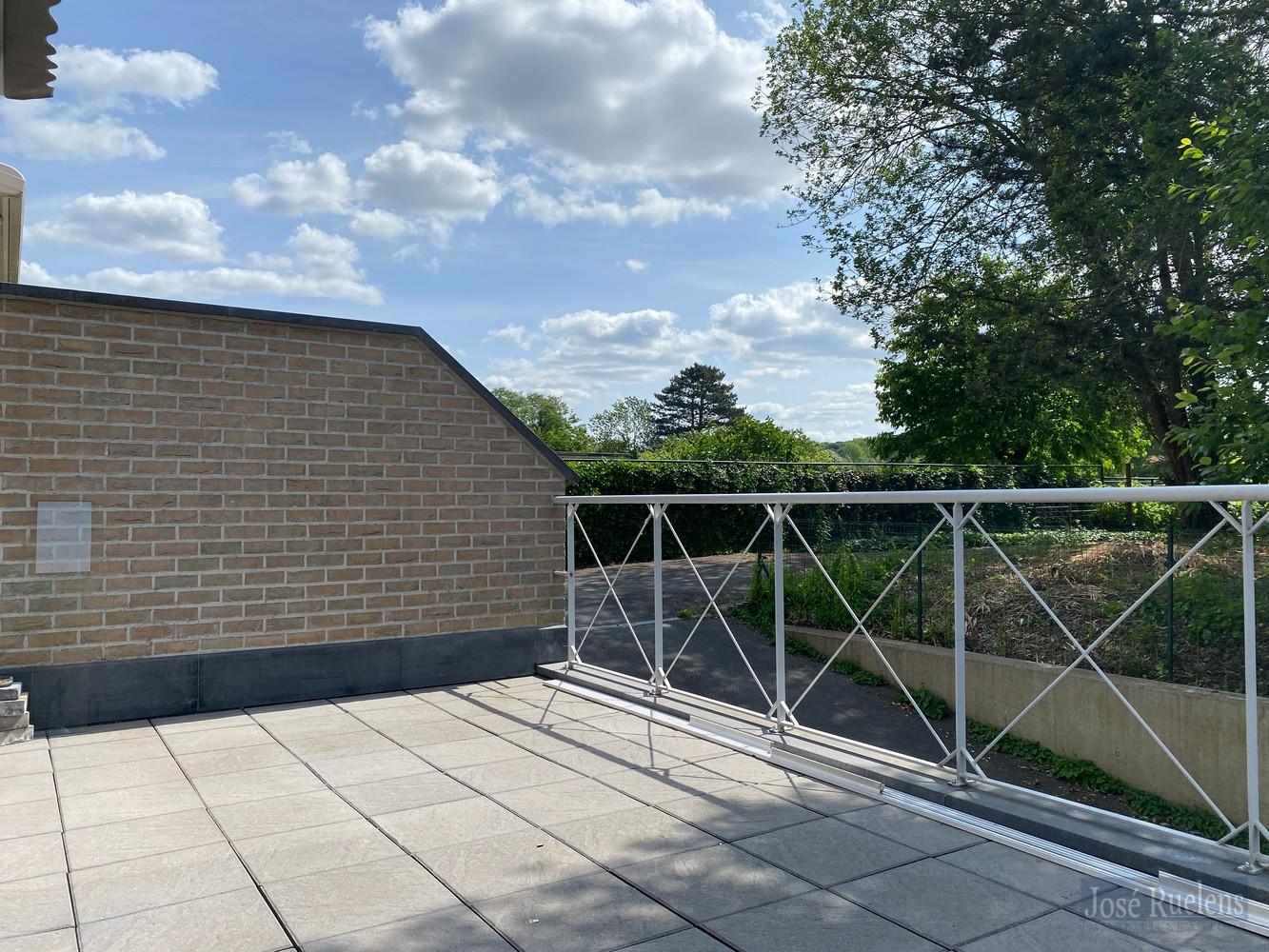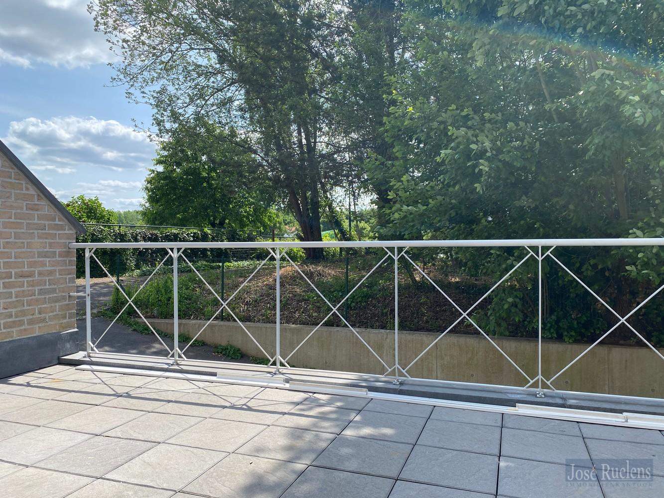 Aansluitend aan de woonkamer is er het grote terras waar plaats is voor een ligzetel en tuintafel.