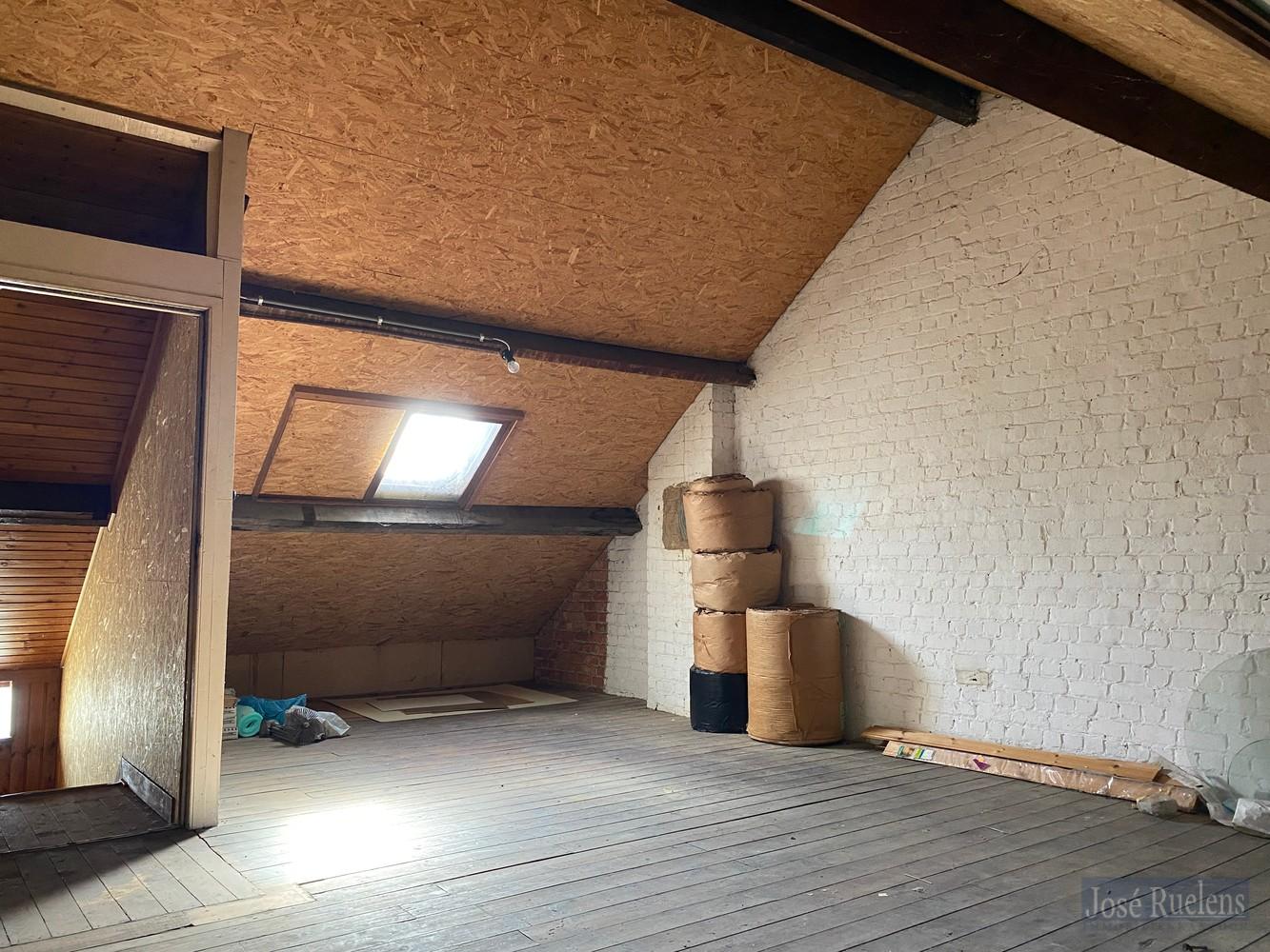 Op de tweede verdieping, onder het dak, is er nog een grote, af te werken zolder. Een ruimte met nog heel wat mogelijkheden.