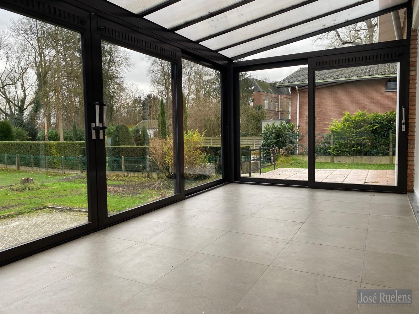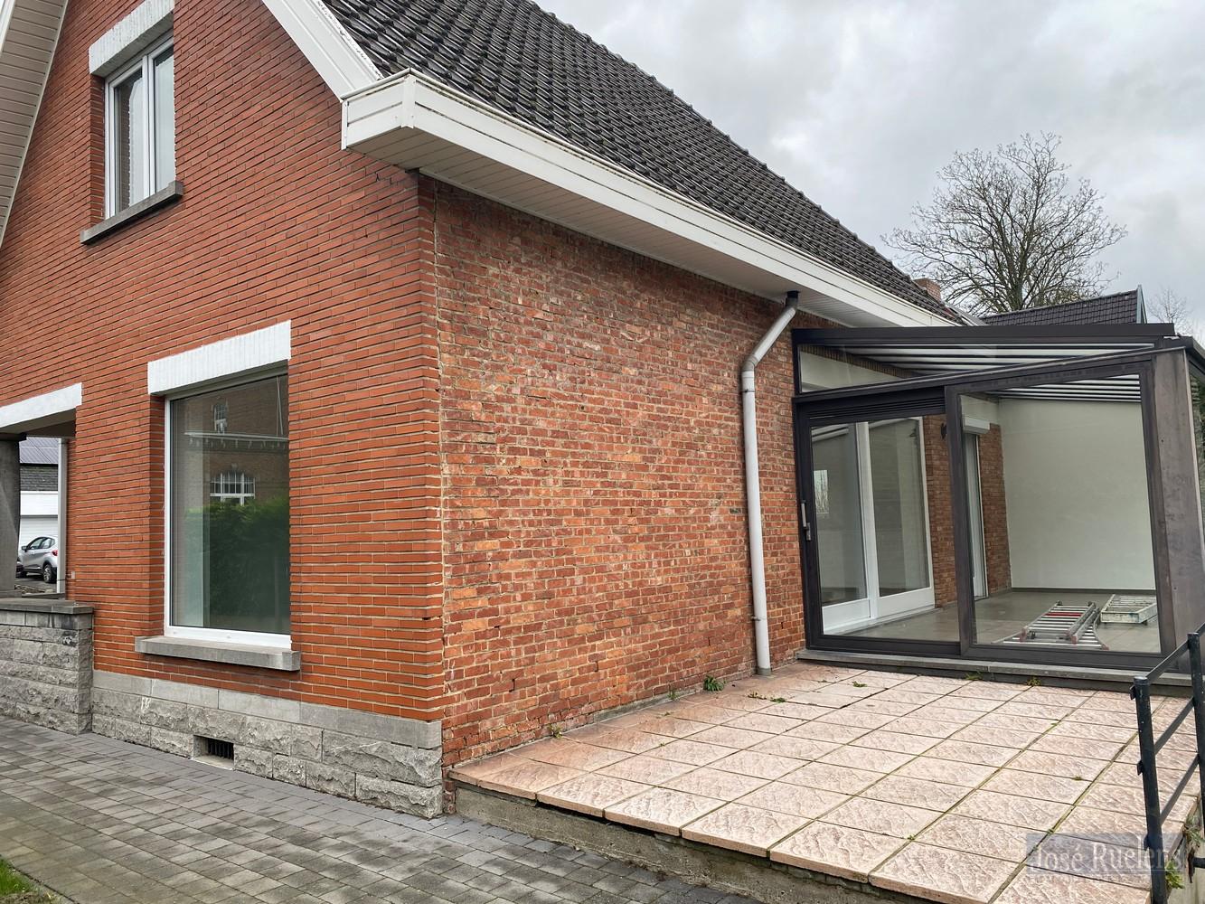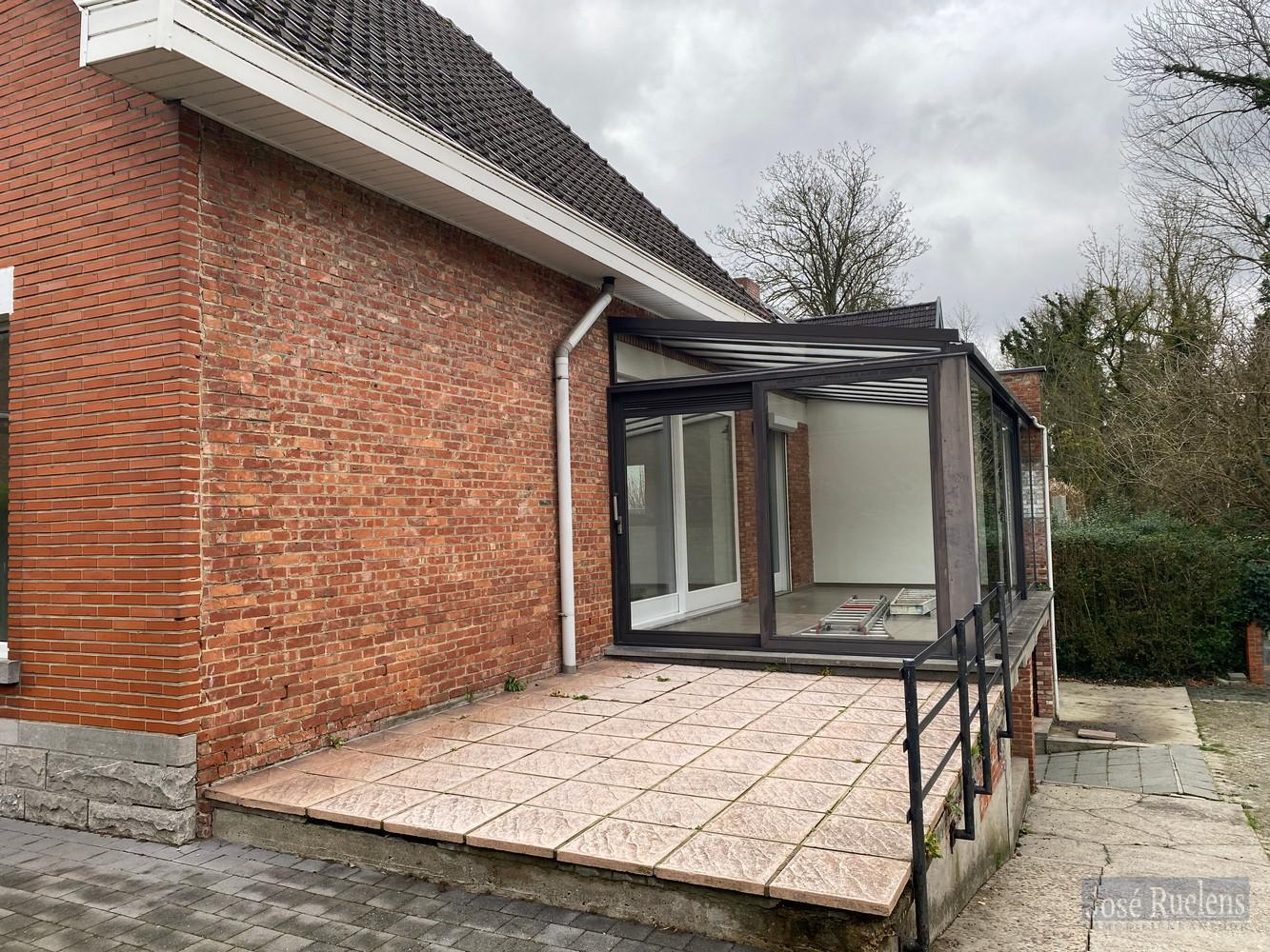 De woning bestaat gelijkvloers uit een aangename inkom, een lichtrijke woonkamer met volledig, open geïnstalleerde keuken en aansluitend een leuke zomerveranda.