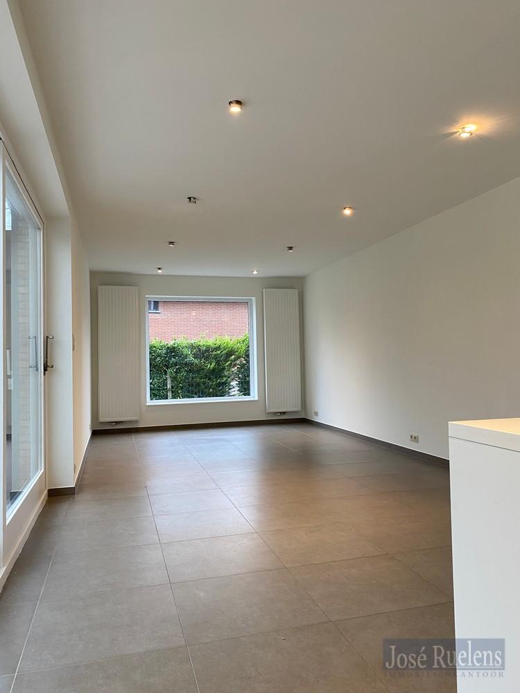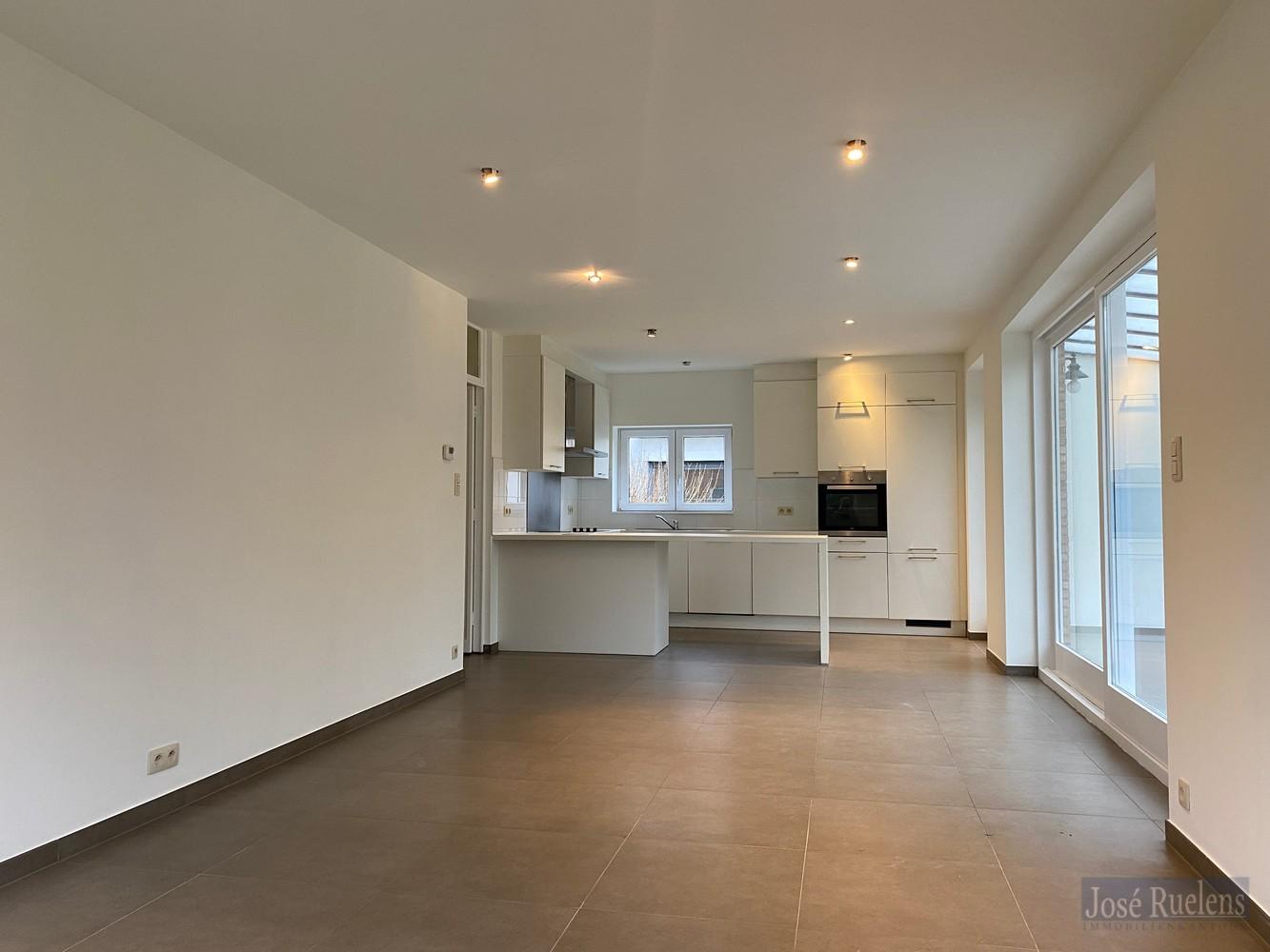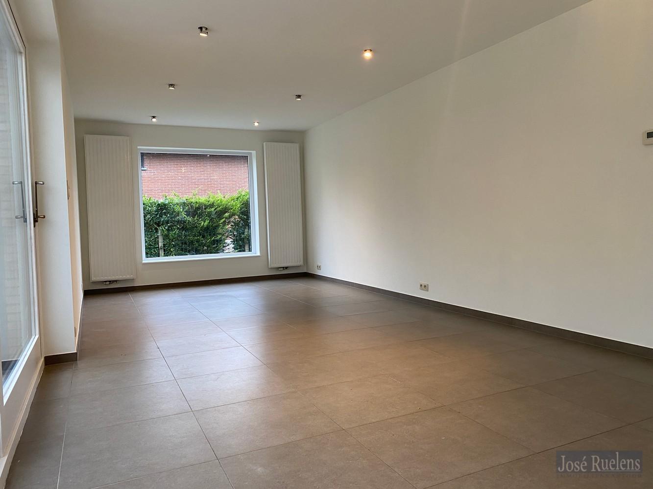 De woning bestaat gelijkvloers uit een aangename inkom, een lichtrijke woonkamer met volledig, open geïnstalleerde keuken en aansluitend een leuke zomerveranda.