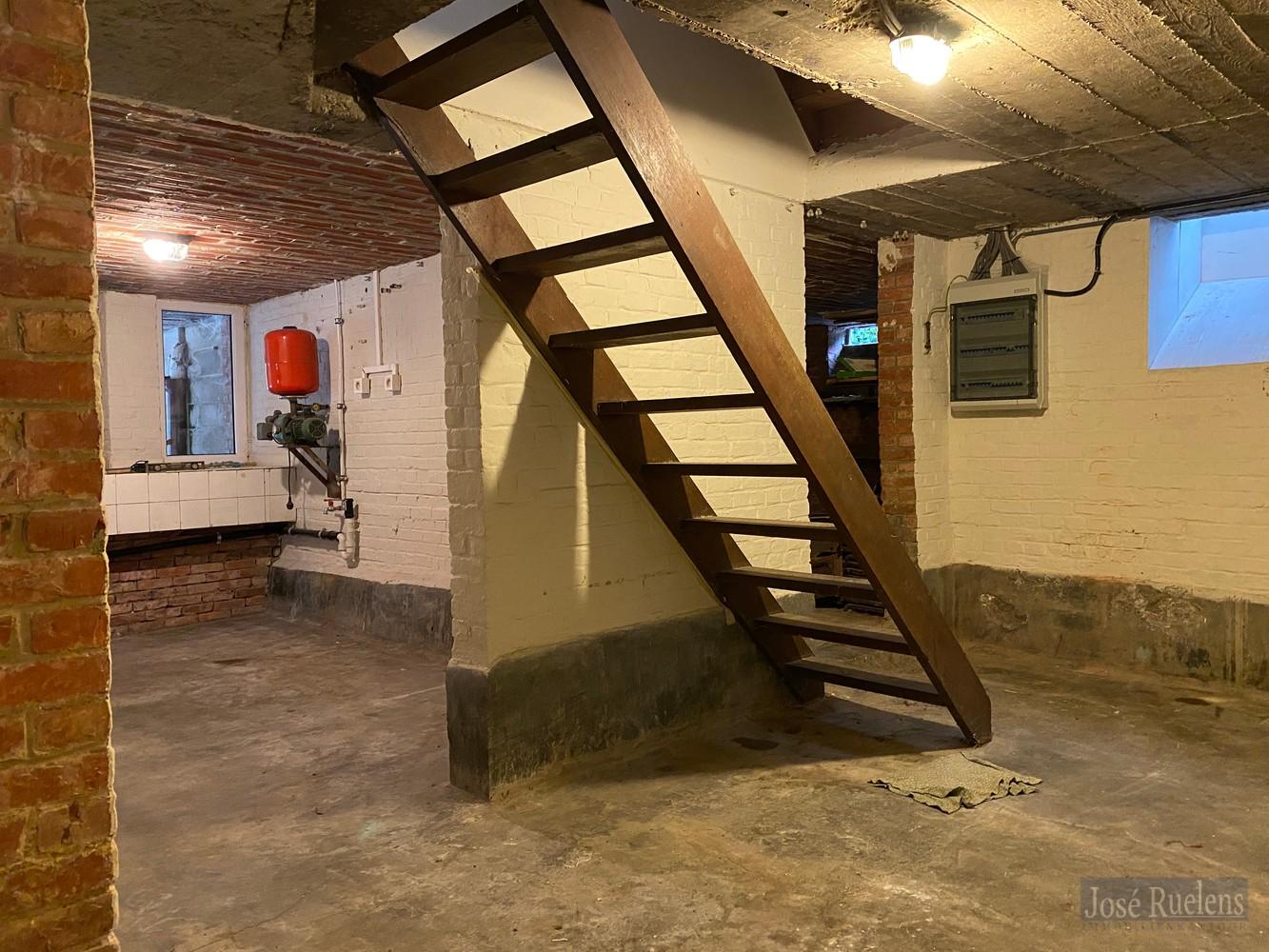 Verder is de volledige woning onderkelderd. Vanuit de kelder is er ook toegang tot de tuin. Een gedeelte van de kelder deed vroeger dienst als garage. Dat kan momenteel nog maar dan enkel voor een kleine wagen.