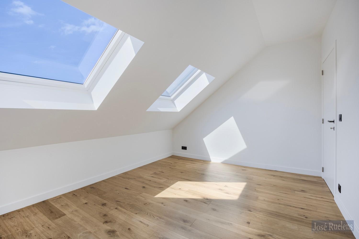 De zolderverdieping is afgewerkt tot 2 ruime slaapkamers voorzien van een veluxvenster.