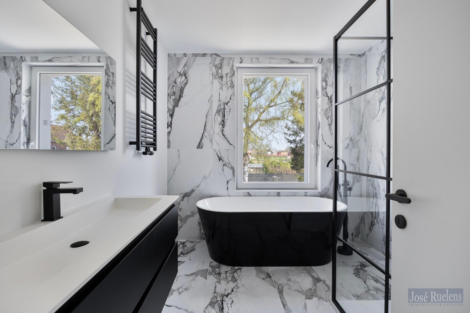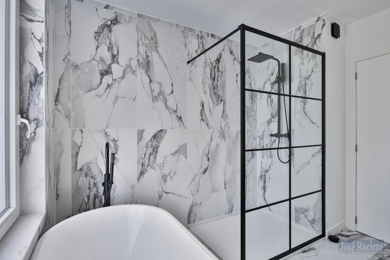 Op verdieping is er een moderne badkamer met ligbad en douche en een apart toilet en 1 grote slaapkamer .